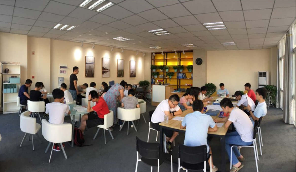 春笋英语经典教学场景实景:20名学生9年级至高三,基础成绩从40余分至120分不等,且学习进度各自独立。